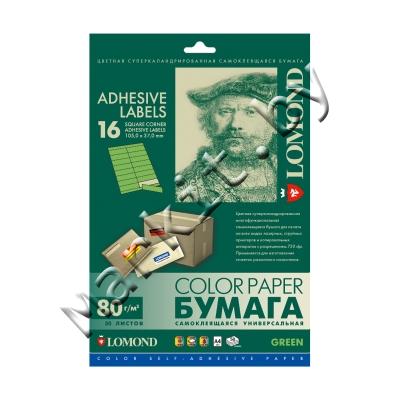 Самоклеящаяся бумага LOMOND (2120125) A4, 16 дел (105x37мм), зеленая, 50 листов Код: 1291